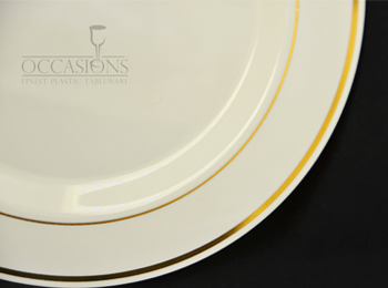 Occasions High Quality Ivory Plastic Plates With Gold Line. 10.5” – 10 Pack.