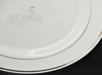 Occasions High Quality White Plastic Plates With Silver Line 10.5” – 10 Pack