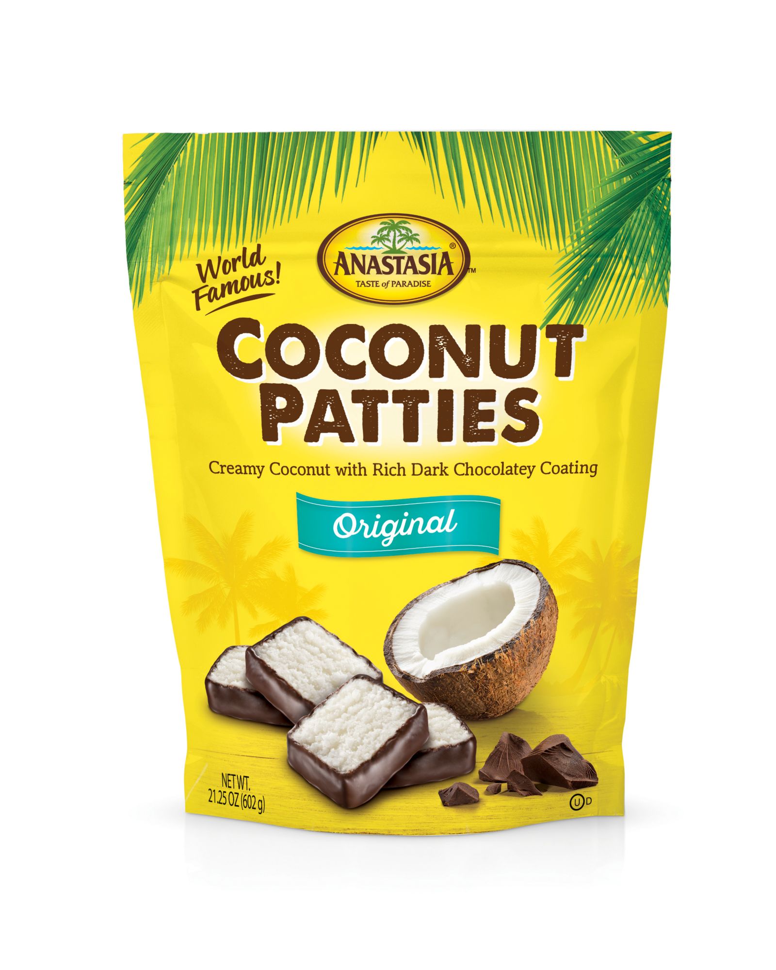 Take just one bite of the famous Anastasia Confections Classic Original Coconut Patties, and find out for yourself why they are so well-loved. Originally a Florida tradition, these unique coconut and dark chocolate treats have become a delectable delight for coconut lovers nationwide. Product Features: 17 patties per bagCreamy real coconut dipped in rich dark chocolateIndividually wrapped to enhance and prolong freshnessA decadent treat for lunch bags, on-the-go snacking and moreGluten freeOUD kosher certifiedIncludes 17-count of individually wrapped coconut patties Product Warnings and Restrictions: Contains milk, soy, egg and Coconut; made in a facility on shared equipment that also processes peanuts, tree nuts and wheat (Model 4600)