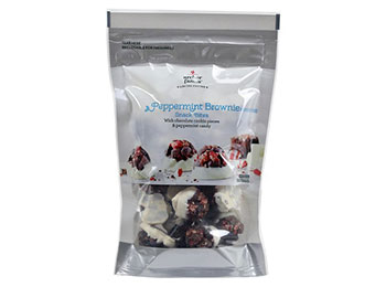 Peppermint brownie snack bites, with chocolate cookie pieces & peppermint candy.