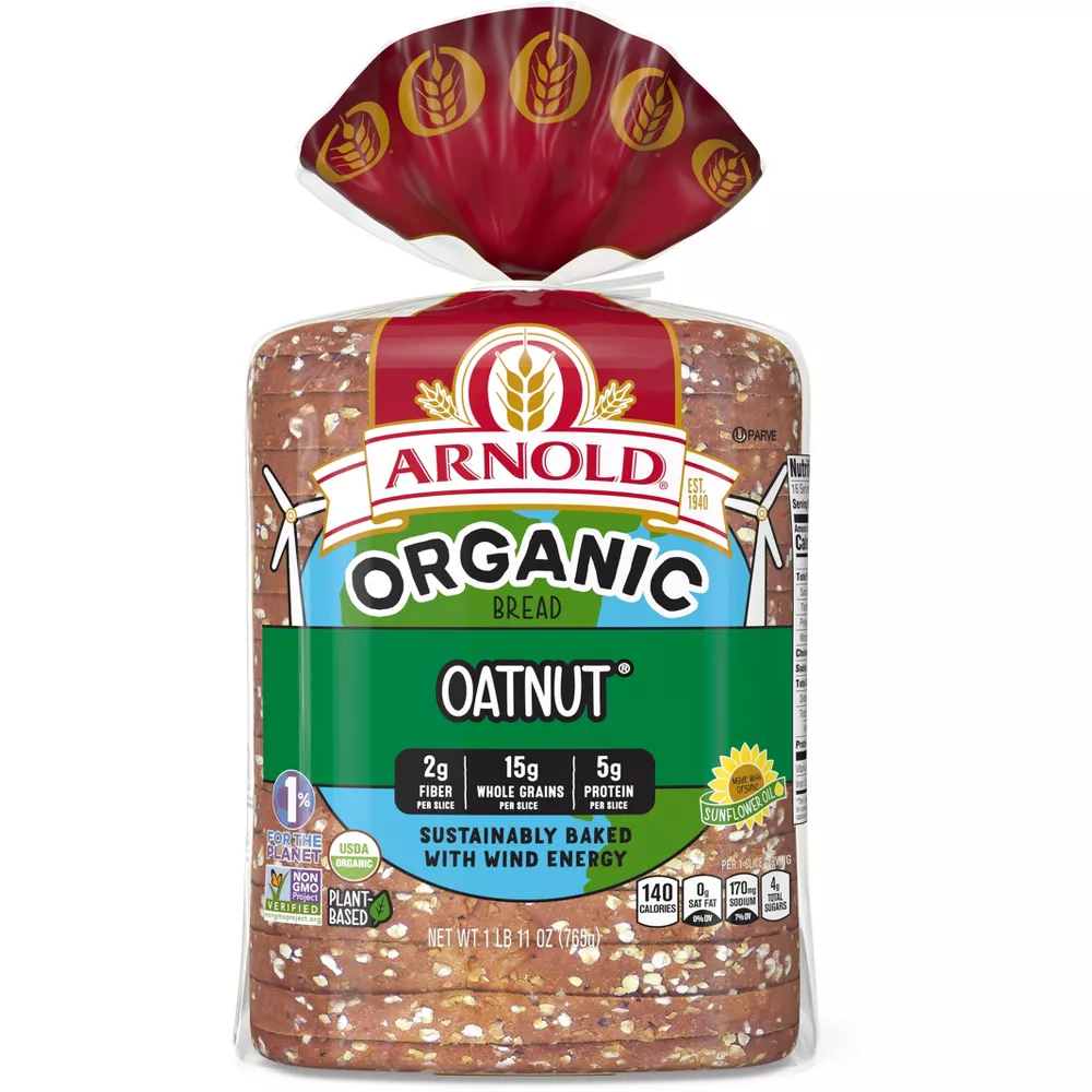 Arnold Organic brings you a new take on one of your favoirte products! We blend oats, hazel nuts and whole wheat for a delicious, slightly sweet and nutty taste that Organic consumers love. This product uses Organic Sunflower Oil instead of Soybean or Canola Oil and each slice has 4g Protein and only 3g of added Cane Sugar. Arnold Organic’s difference lies in the combination of our ingredients and eco-friendly baking practices. Not only do we use USDA Organic ingredients that make the soil richer and promote bio-diversity, but we also continuously work to reduce our carbon footprint. We offset 100% of the energy used to bake our loaves with renewable wind energy and use 380 bread delivery trucks that are powered by alternative fuels that release 60% less smog. As members of 1% for the Planet, we donate a portion of this bread’s revenues to support public food gardens in urban communities.
