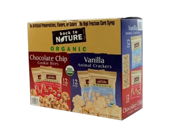 24 packs, 1 ounce each. 12 Vanilla Animal Crackers and 12 Chocolate Chip Cookie Bites. USDA Organic. No Artificial Preservatives, Flavors or Colors. No High Fructose Corn Syrup.