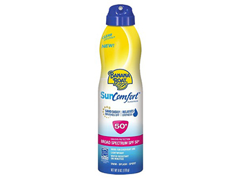 Now you can have your most comfortable experience yet in the sun and sand. Introducing NEW Banana Boat SunComfortTM Clear UltraMist Sunscreen ? a unique sunscreen that allows sand to easily brush off, moisturizes and protects. With this unique Clear UltraMist Sunscreen, you can fall in love with the sand and sun all over again!r