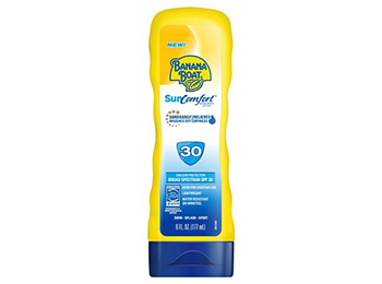 This unique sunscreen allows sand to easily brush off, moisturizes and protects.?NEW Banana Boat SunComfort Lotion Sunscreenis designed so you can have your most comfortable experience in the sun and sand!?In fact, it is tested to stay on in 7 real life conditions ? sun, pool water, ocean water, wind, sweat, sand and even 100 degree heat.