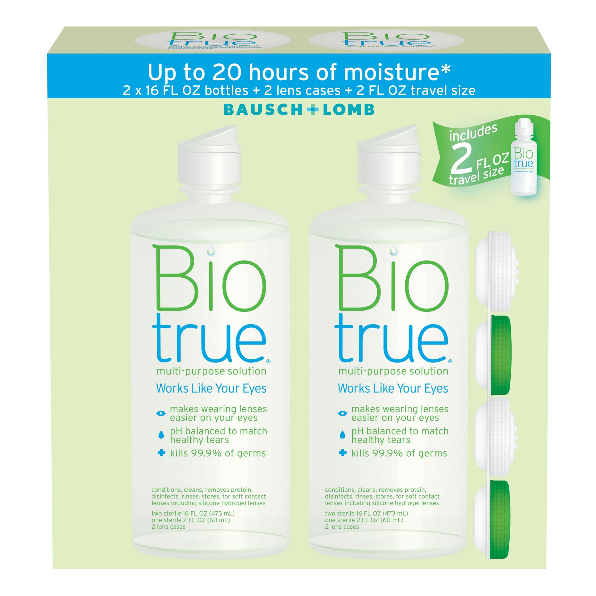 This multipurpose solution is pH balanced to replicate the natural cleansing capabilities of your eyes. Specially formulated to condition, clean, disinfect and rinse soft contact lenses during storage, the solution helps make lenses comfortable to wear. The package includes 2 bottles of solution and 2 lens cases. Product Features: Conditions, cleans, disinfects, rinses and stores soft contact lenses, including silicone hydrogel lenses (lenses not included)Removes protein from lenses and helps make them comfortable to wearFormulated and pH balanced to replicate healthy, natural tearsIncludes two 16-fl. oz. bottles of solution and 2 lens cases Product Warnings: If you are allergic to any ingredient in this product, do not useAlways discard solution from lens case after each useKeep bottle tightly closed when not in useStore solution at room temperatureUse before expiration date printed on the carton and bottleDiscard any remaining solution 90 days after openingKeep out of reach of children (Model 623590)