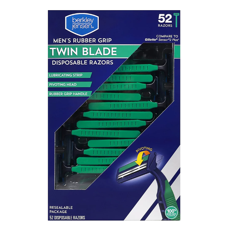 Get a close yet gentle shave with Berkley Jensen Men’s Triple Blade Handle with Motion Sphere Multi-Pivot Technology and refill cartridges. The Motion Sphere Razor not only pivots front to back, but also has 24 degrees of pivot side-to-side to closely follow the contours of your face for a close shave. Dual lubrication before and after the blades, enhanced with Vitamin E, helps to reduce irritation, soothe skin and improve glide. Our blade edges are double coated for a close, comfortable shave making it ideal for sensitive skin. Anti-clog cartridge is designed with an open blade architecture that allows the blades to quickly rinse clean. This product has been Dermatologist tested and is Hypoallergenic. As with all Berkely Jensen products we want you to be completely satisfied. These razors come with our 100% money-back guarantee so you can purchase with confidence.