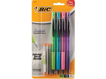 Atlantis metal pencil fashion barrel features top lead advance, contoured, rubber grip and it is scantron certified.rr0.7 mm lead diameterrRefillablerNo. 2 LeadrTop lead advancerScantron certifiedrBonus lead & erasersr4 Mechanical Pencils per pack