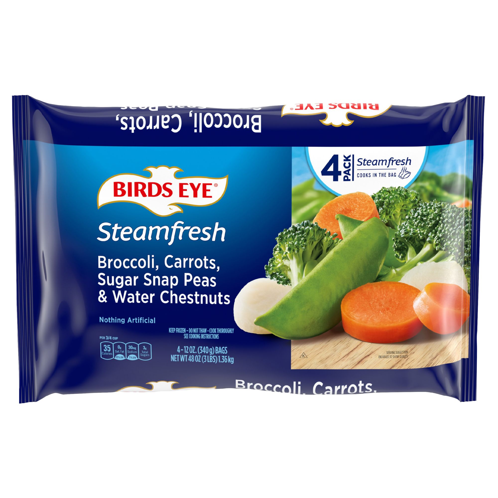 Here are delicious Birds Eye vegetables in a blend that is just right for side dishes and your recipes. Product Features: All-natural and no preservatives Cooks perfectly in the bag Frozen fresh Includes four 12-oz. bags of frozen vegetables (Model 01450001529)