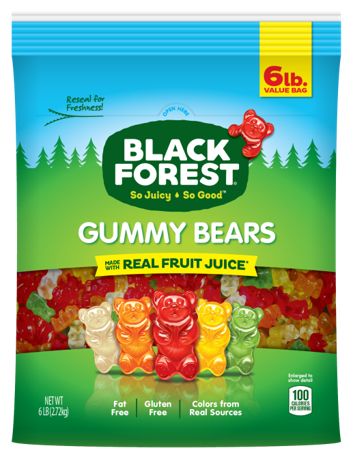 Made in USABlack Forest Gummy Bears taste great. Product Features: Assorted colorsGreat gummy textureGreat for a snack or in a lunchboxIncludes one 6 lb. bag (Model 74610)