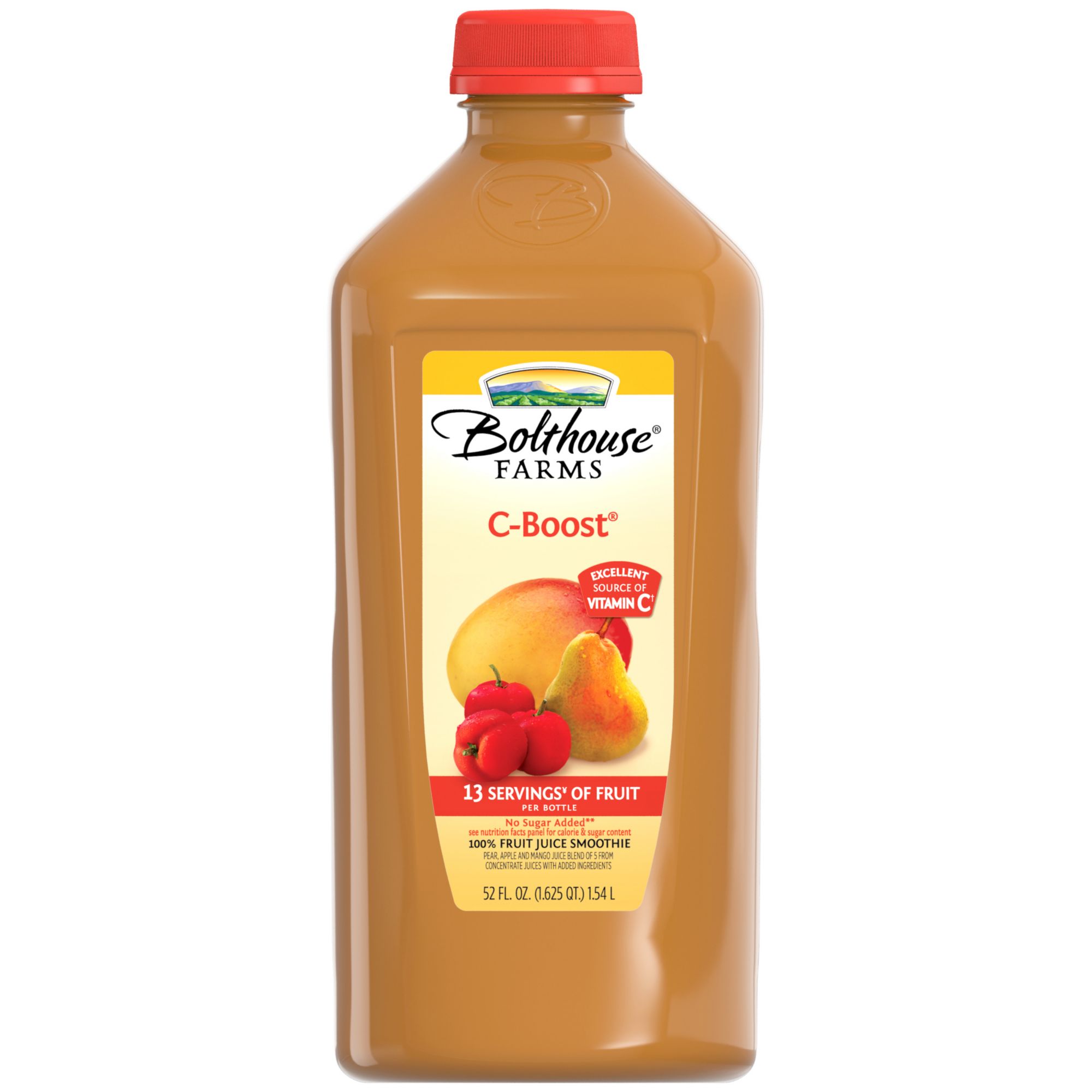Made in USABolthouse Farms C-Boost contains 13 servings of fruit per bottle and delivers 140% of ZINC and 600% Daily Value of VITAMIN C per 8 fl. oz. serving with no sugar added. This will give you the nutrients you need to help boost your immune system and keep you healthy. Product Features: 13 servings of fruit per bottle 140% of zinc per serving 600% Daily Value of vitamin C per 8 fl. oz. serving No sugar added Ingredients: Pear Juice from Concentrate (Water, Pear Juice Concentrate), Apple Puree From Concentrate (Water, Apple Puree Concentrate), Mango Puree From Concentrate (Water, Mango Puree Concentrate), Acerola Puree From Concentrate (Water, Acerola Puree Concentrate), Contains 2% Or Less: Lemon Juice From Concentrate (Water, Lemon Juice Concentrate), Natural Flavor, Vitamin C (Ascorbic Acid), Vitamin A (Beta Carotene), Zinc Amino Acid Chelate, Vitamin E (D-Alpha Tocopherol Acetate)