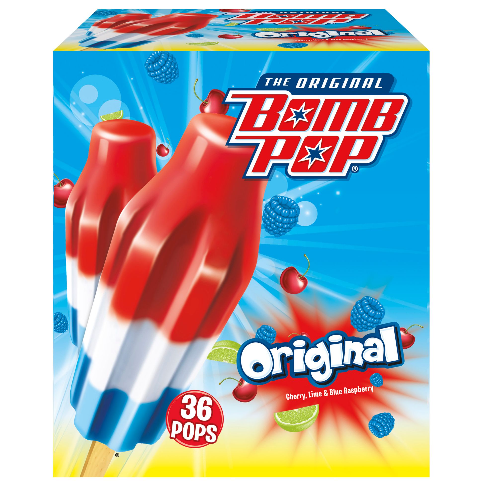 Made in USAIce pop flavor roll call: Cherry? Definitely here. Lime? You bet. Blue raspberry? Aww yeah. Get a lick of the Original Bomb Pop, with three deliciously frosty flavors in an iconic rocket shape. It’s the Original red, white, and blue pop. Need we say more? Declare Your Freezedom! Distinctly Different, Totally Awesome Product Features: Three fruity flavors on one stick40 calories per pop7g of sugar per popEnjoy on the go (Model 1323645)