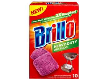 Brillo Heavy-Duty Soap Pads are 2X tougher than a regular soap pads. They have more wool and more soap. They will last twice as long as a regular soap pad.rBonded edges maintain shape of the pad for more effective cleaning in hard to reach areasrAnti-rust formula resists rust so the pad lasts longerrOriginal grease fighting soap cuts through tough messesrPads are designed to last longer than a regular soap pad