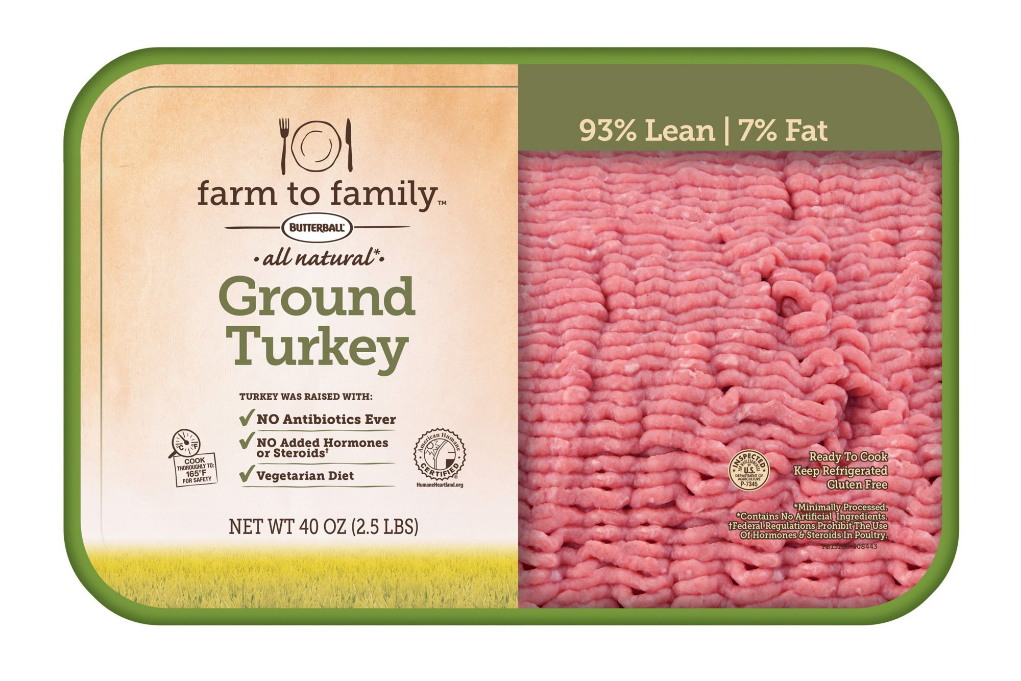 At Farm to Family, we know that the best quality ground turkey isn’t about what we add, it’s about what we leave out. That’s why our turkey is raised without antibiotics and has no added hormones or steroids. Product Features: Turkeys raised with no antibiotics and no hormones or steroids93% lean and 7% fatIncludes 2.5 lbs. of Farm to Family ground turkey (Model