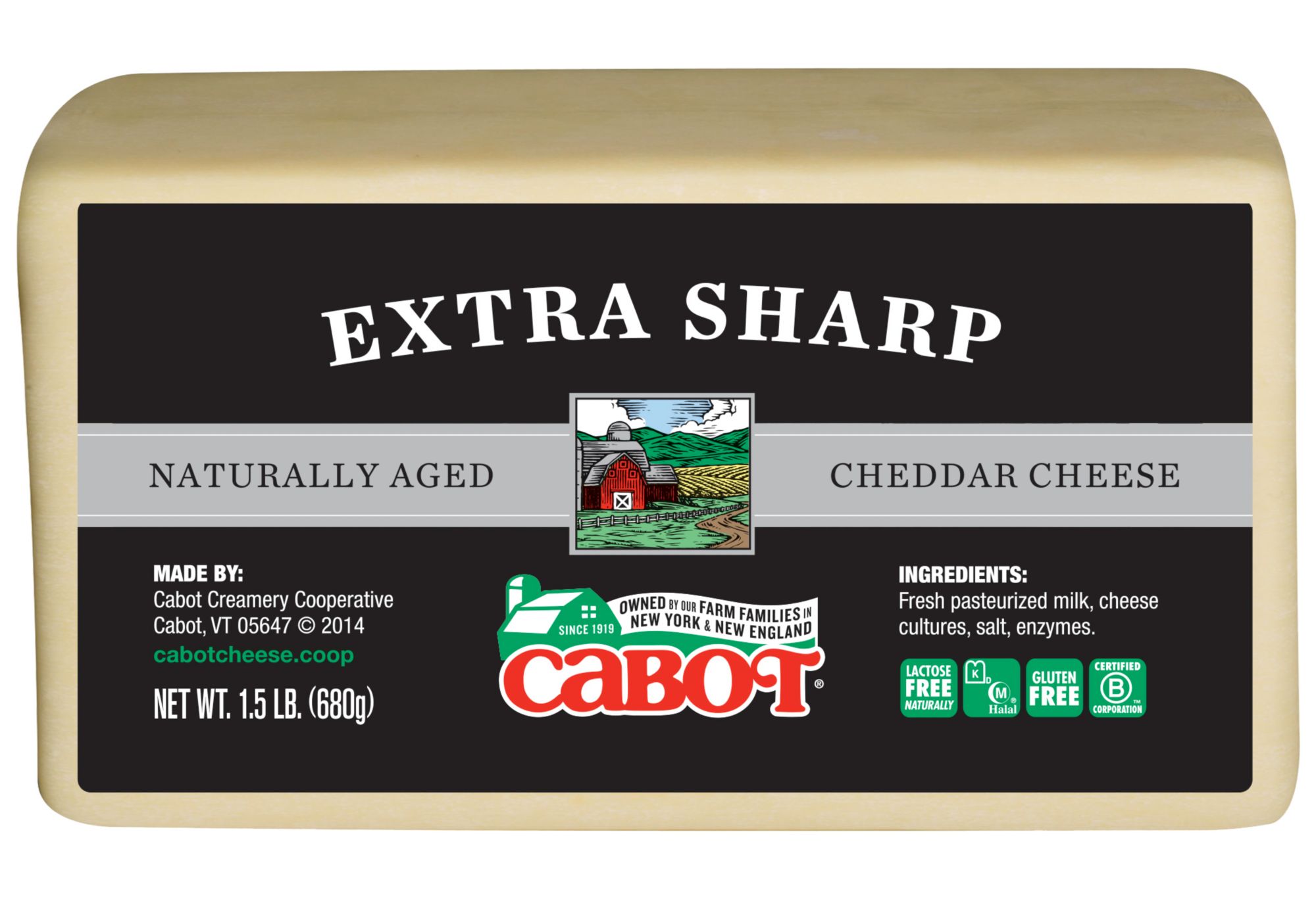 Made in USACabot Creamery Extra Sharp Naturally Aged Cheddar Cheese features a creamy white cheese with an almost crumbly texture and sophisticated citrusy tang. This gluten-free and lactose-free snacking cheese is paired with roasted nuts and ice-cold ale. Product Features: Extra sharp cheddarLactose-freeGluten-freeAll naturalOwned by cooperative of farmersFresh pasteurized milk, cheese cultures, salt, and enzymesIncludes 1.5 lbs. extra sharp naturally aged cheddar cheese Product Warnings and Restrictions: Contains milk (Model 1236)