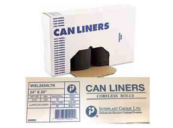 Can Liners Coreless Rolls 24 x 24 inches. Black. 1000 Pack