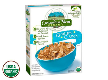 A delicious, new organic cereal from Cascadian farm. Organic whole grain squares lightly sprinkled with cinnamon and sugar.
