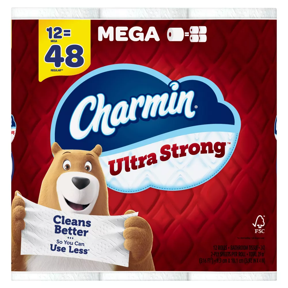 Get sparkly clean with Charmin Ultra Strong. It’s 4X stronger when wet* and has a diamond weave texture. It’s woven like a washcloth and holds up when you wipe. It even cleans better so you can use less* and go longer without changing the roll**. We also made it MEGA in size, so you get mega value. That’s right, our Charmin Ultra Strong Mega Roll is way bigger, equals 4 regular rolls, and it’s more bang for your behind so you’ll be running back to the store less and less (based on number of sheets in Charmin Regular Roll bath tissue). Our Charmin Ultra Strong toilet paper is also 2-ply and designed to be clog-safe and septic-safe so you can flush confidentially and keep clean. We all go, why not Enjoy The Go with America’s favorite toilet paper***.*vs. leading USA 1-ply bargain brand** vs. Charmin Regular Roll***Charmin Brand based on sales. Source: Nielsen 2021 dollar sales.