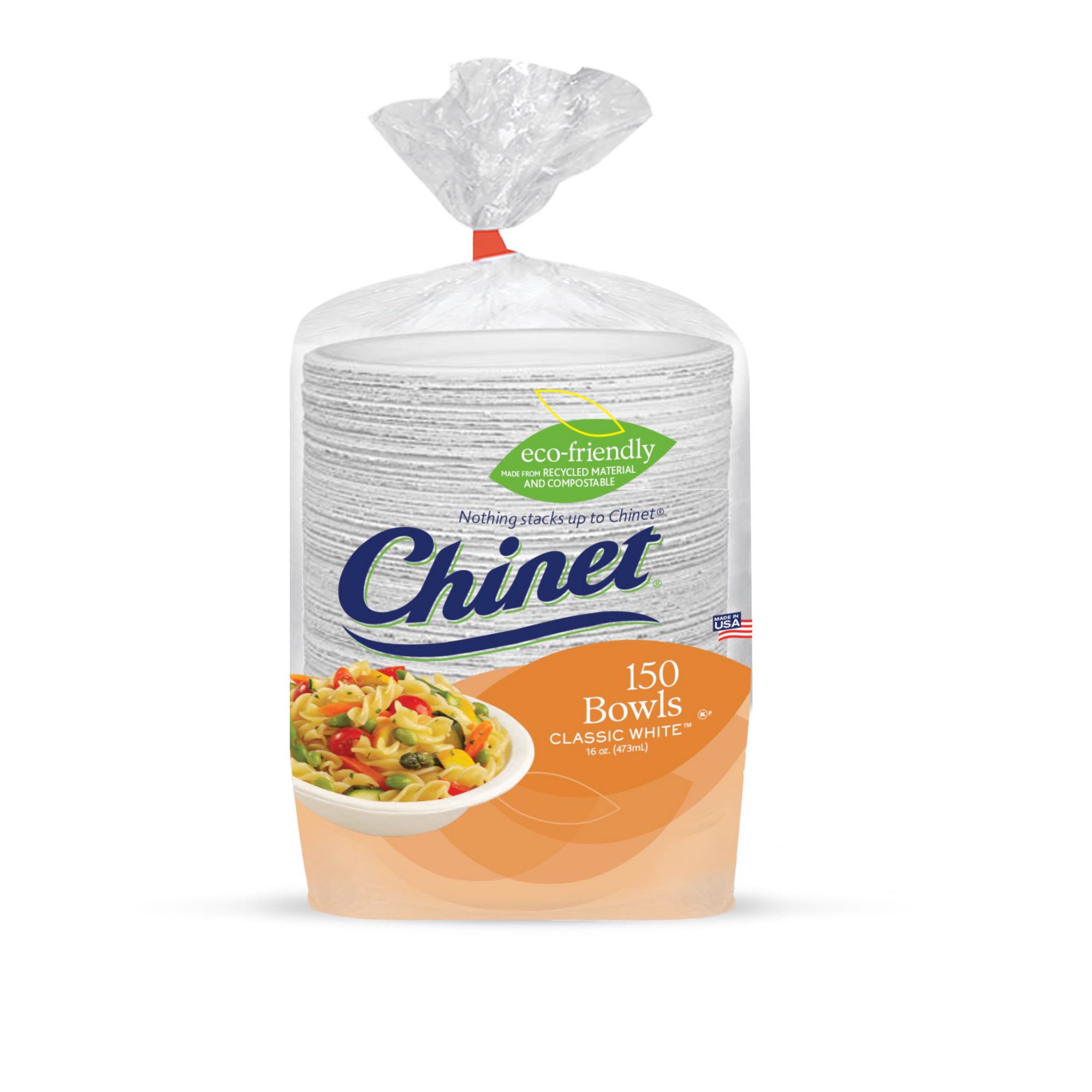 Chinet Classic White Fiber Bowls are made from 100% pre consumer recycled materials and biodegradable. Durable, disposable for everyday use, parties, picnics and other occasions. Proudly made in the USA. Product Features: Durable and disposableLeak proof Microwave safeCut resistant