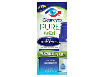 Clear Eyes Pure Relief for Dry Eyes 0.3oz. Preservative Free. Long Lasting Advanced Comfort. Multi Use Bottle with Built In Purifying Filter. Over 240 Drops