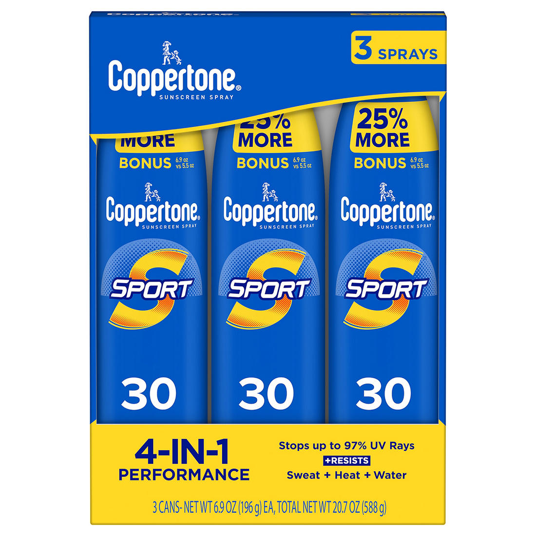 Coppertone Sport Broad-Spectrum SPF 30 Sunscreen Spray, 3 pk./6.9 oz.