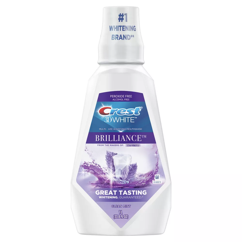 Crest 3D White Brilliance Alcohol Free Whitening Clean Mint Mouthwash – 33.8 fl oz