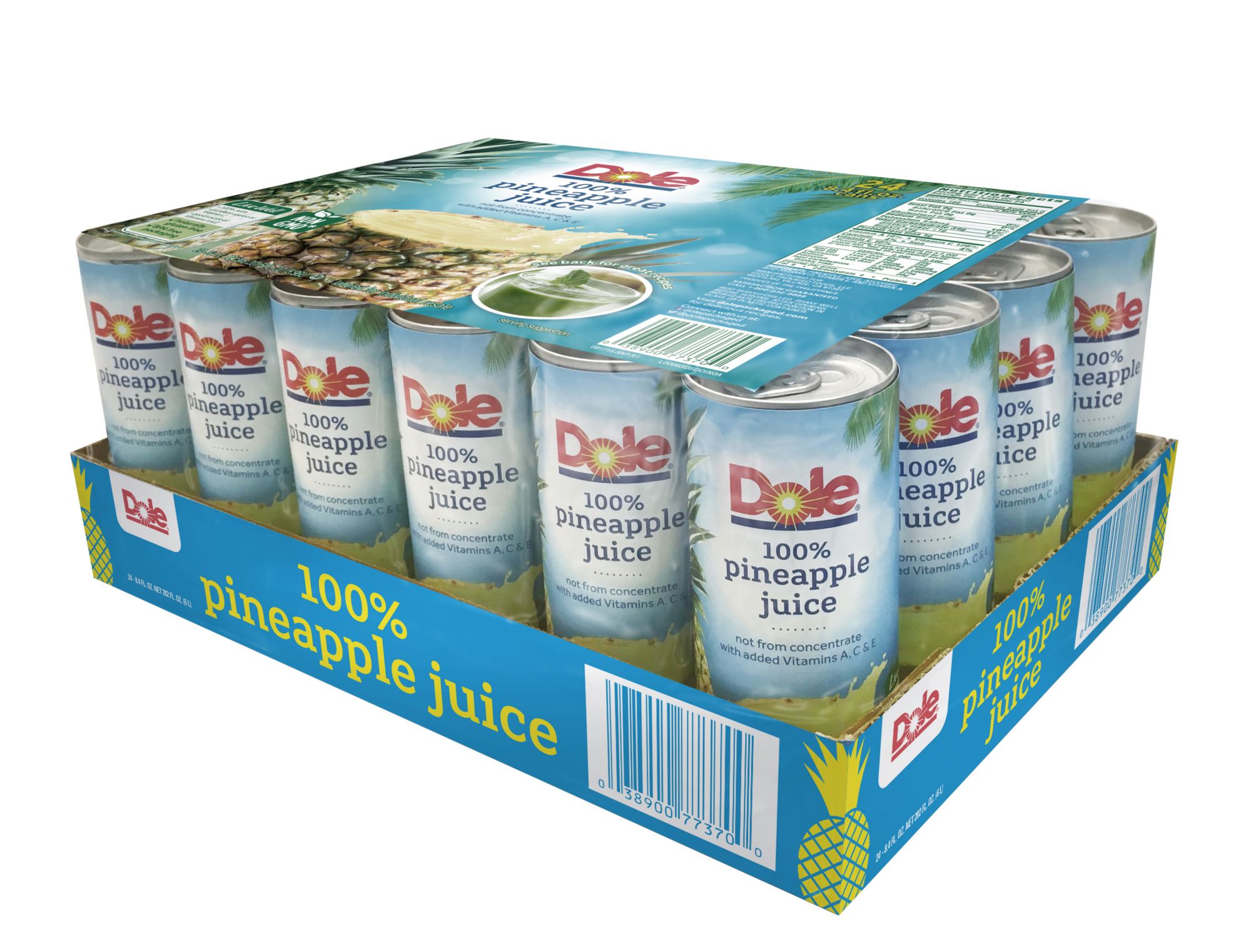 Dole 100% Pineapple Juice is delicious and a great addition to lunchboxes or as a grab and go snack. All-natural and not from concentrate, it contains no artificial flavors. Product of Asia. Kosher OU. Product Features: Great addition to lunchboxes or as a grab and go snack No artificial flavors Kosher OU Shelf life: 260 days Includes twenty-four 8.4-oz. cans (Model 77370)