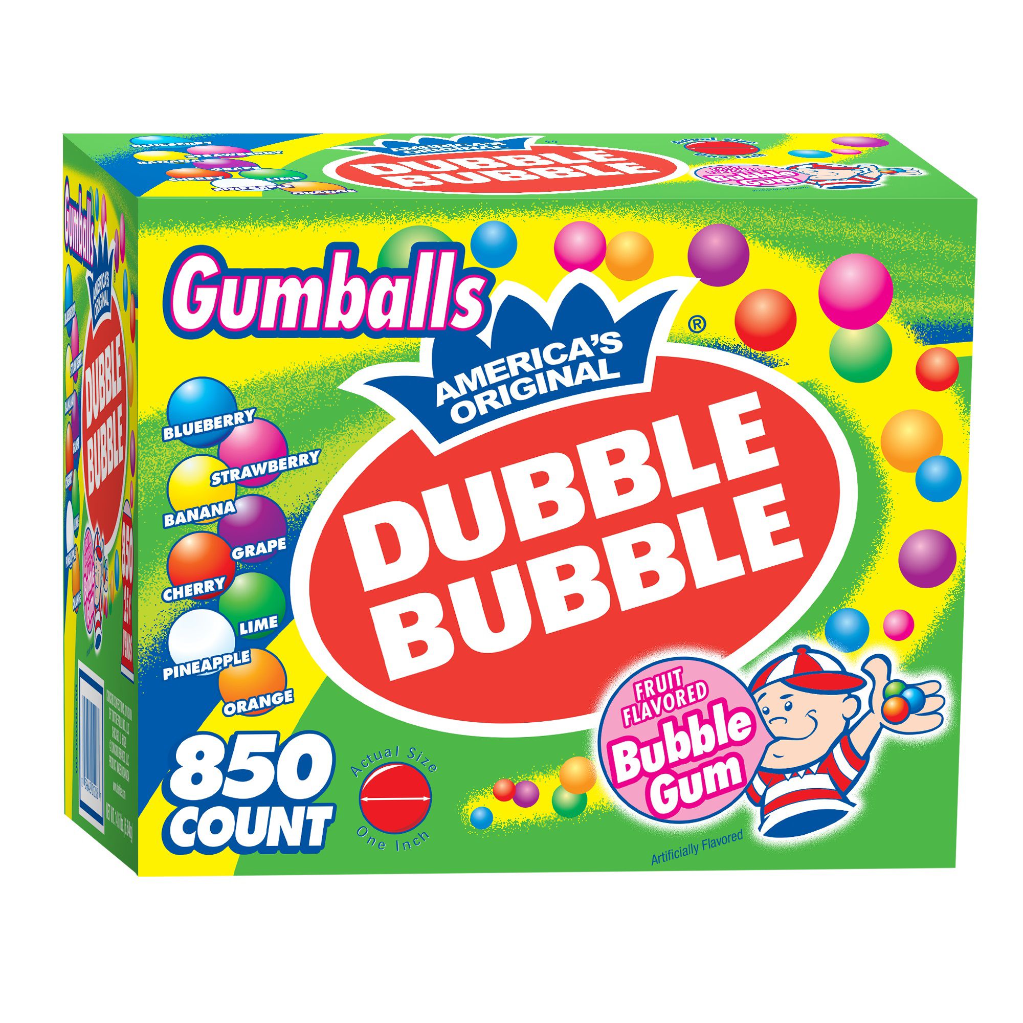 Enjoy Dubble Bubble Bubble Gum individually wrapped gum balls in assorted fruity flavors. Product Features: Flavor filled gum ballsAssorted gum ballsFruity flavorsStrawberry, pineapple, blueberry, lemon lime, orange, cherry, banana and grape flavorsIncludes 850 count tub (Model 059642010083)