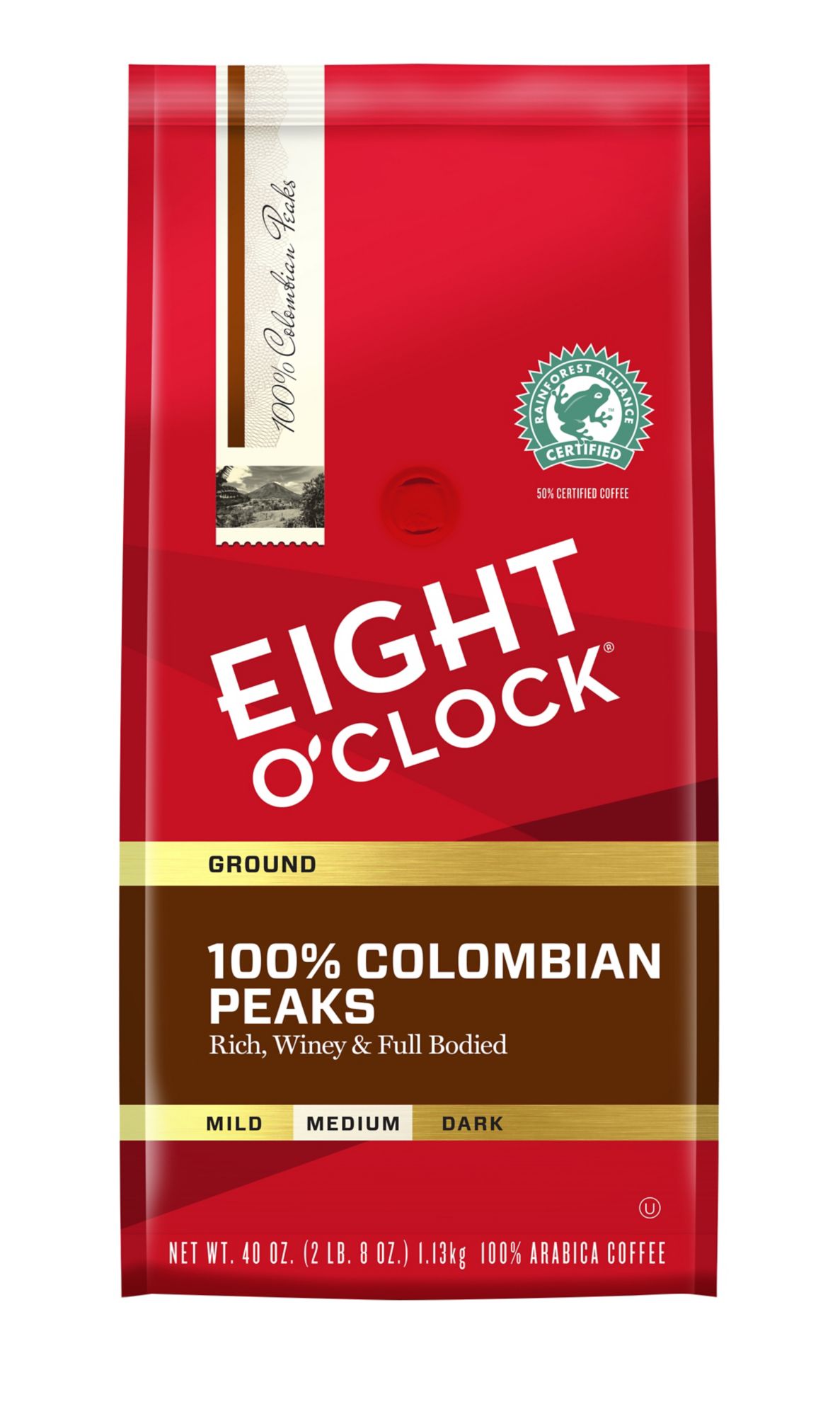 Made of 100% medium roasted Colombian beans, Eight O’Clock 100% Colombian Peaks Ground Coffee features winey notes, a rich, elegant aroma and a full bodied finish. Whether enjoyed with breakfast, as an afternoon pick-me-up or following dinner, this flavorful premium coffee is sure to delight any coffee lover. Product Features: Award-winning roast of 100% Colombian beansMedium roastFeatures winey notes and a rich aroma with a full bodied finishRecipient of the Rainforest Alliance seal of approvalIncludes 40 oz. of medium ground coffee (Model 011141102768)