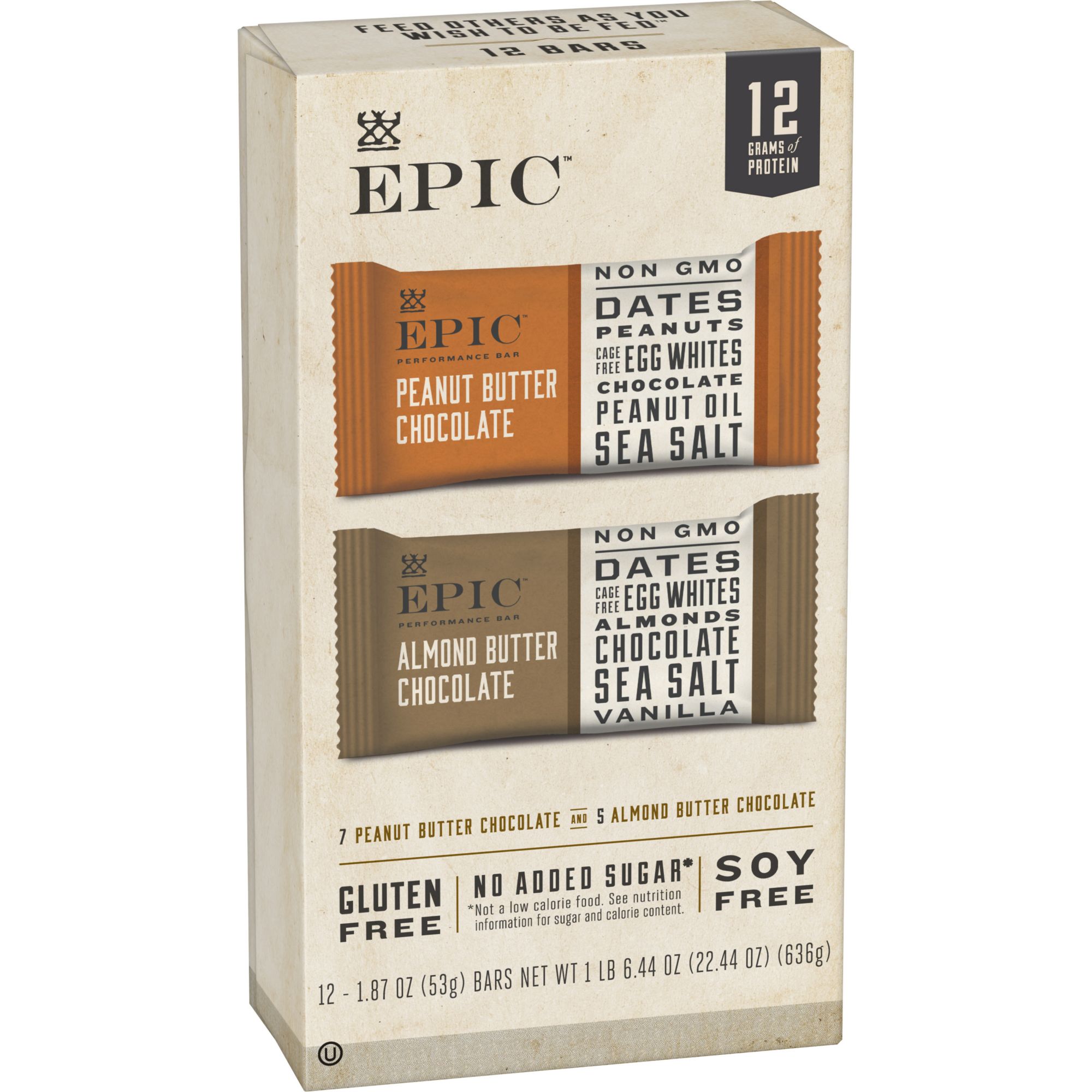 What makes EPIC Performance Bars special starts with cage-free egg whites. Our Performance Bars are thoughtfully crafted with six simple ingredients or less, making them an EPIC snack that can fit into many diets and lifestyles. This pack includes 12 EPIC Almond Butter Chocolate Performance bars. Product Features: Gluten FreeSoy freeNo added sugar12g of proteinCage free egg whitesNon-GMOKosher