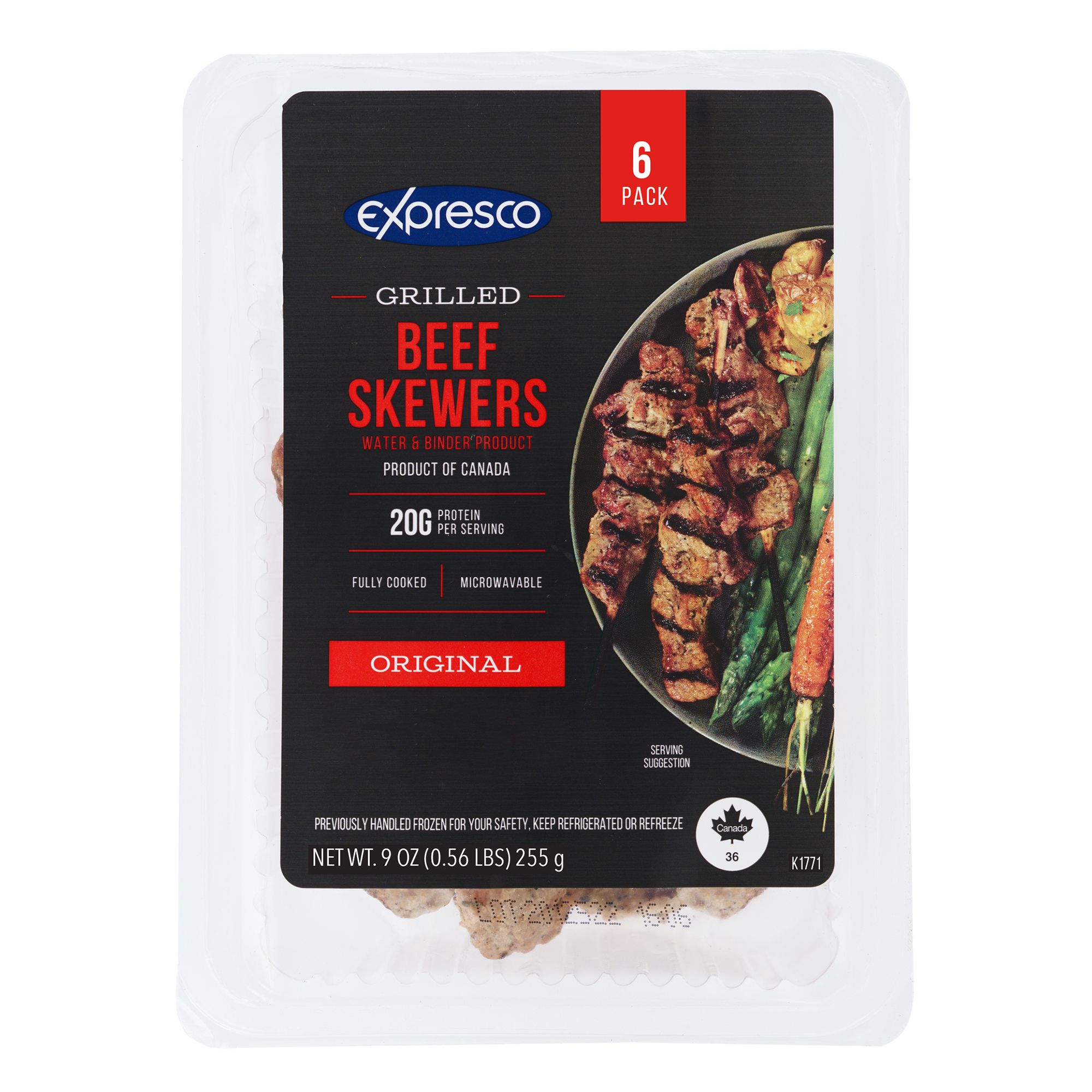 Six 1.5oz grilled sirloin steak skewers are made using whole muscle beef and with simple ingredients. The skewers are fully cooked and ready-to-eat. They are an excellent source of protein that are microwavable and quick and easy to reheat and serve. In addition, the product can be reheated in the oven and on the grill…