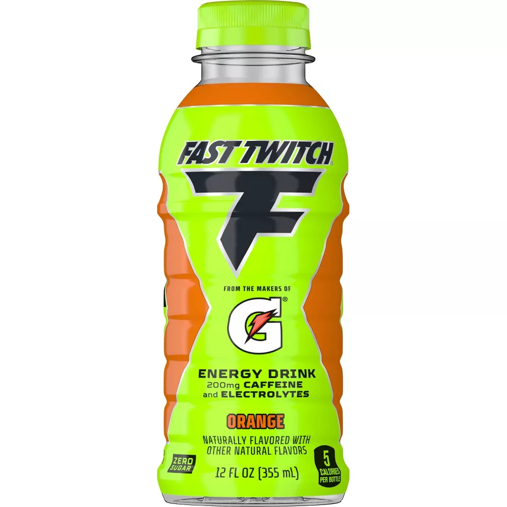 Fast Twitch. A New Energy Drink from Gatorade. Available in 6 great flavors: Strawberry Watermelon, Cool Blue, Glacier Freeze, Tropical Mango, Orange, Strawberry Lemonade with 200mg caffeine to help ignite power and athletic performance, zero sugar and 100% Daily Value of vitamins B6 and B12. No artificial flavors or colors from artificial sources Fast Twitch…