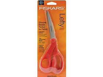 Left Handed Bent 8 inch Multi-Purpose Scissors are perfect for multi-purpose cutting of fabric and many other materials in the home or office. Contoured handles reduce fatigue during extended use. Offset handles make it easy to cut on flat surfaces. Features include: offset handles; multi-purpose cutting; adjustable pivot screw enables blade tension to be modified; and precision ground blades. Color: Red/Orange Handles.rrMulti-Purpose ScissorsrStainless Steelr8′
