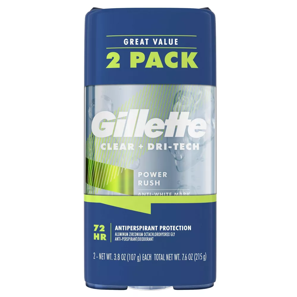 Gillette Antiperspirant Deodorant for Men – Clear Gel Power Rush 72 Hour Sweat Protection – 2pk/3.8oz each