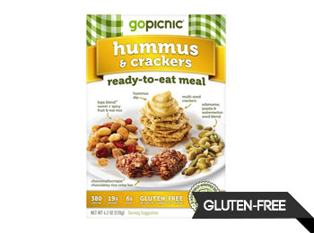 A delicious, nutritionally balanced ready-to-eat meal in a handy picnic box. Just grab a drink, spread out your GoPicnic, and let your taste buds come out and play. No refrigeration, preparation, or wicker basket required! Get ready for creamy hummus, crunchy multi-seed crackers, sweet + spicy fruit & nut mix, energy-packed edamame seed blend, and…