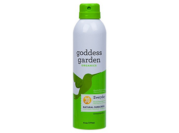 Goddess Garden Everyday Natural Continuous Spray makes sun protection easy! Goddess Garden created the first natural mineral sunscreen in a continuous spray, and still have the only certified organic continuous spray on the market. Goddess Garden Everyday Natural Continuous Spray is made with pure minerals and organic ingredients to nourish your skin, while offering broad-spectrum SPF 30 protection. The non-greasy lotion spray rubs in sheer and is lightly scented with organic lavender essential oil. Goddess Garden continuous sprays use compressed air instead of flammable alcohol propellants, so they?re safe and gentle on the skin. As a plus, the innovative canister is completely recyclable so it?s also gentle on the Earth.?
