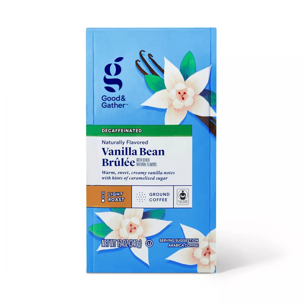 Good & Gather – Naturally Flavored Vanilla Bean Brulee Light Roast Ground Coffee – Decaf – 12oz
