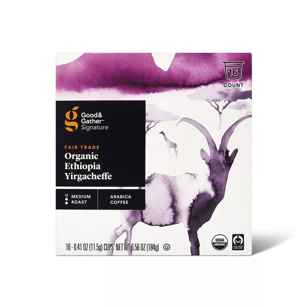 Good & Gather – Signature Organic Ethiopian Yirgacheffe Medium Roast Coffee – 16ct Single Serve Pods