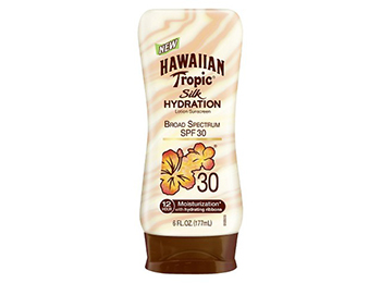 For your day in the sun, heres the New HAWAIIAN Tropic Silk Hydration lotion. It creates an invisible layer over your skin and has an SPF 30 to give you protection from UVA and UVB rays. This sunscreen lotion has hydrating antioxidants infused with silk protein to nourish the skin. It has a warm tropical fragrance. Comes in a 6 oz bottle.