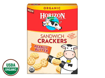 Get Happy at Snack TimeCrisp buttery-tasting crackers team up with real peanut butter for a kid-pleasing snack. Just the right size for little hands these organic sandwich crackers are also a good source of calcium. And did we say theyre delicious Snack FactsCertified Organic ingredients. Good source of claciumMade with real peanut butterNo high fructose corn syrup artificial colors flavors or preservatives.IngredientsOrganic wheat flour organic sunflower oil organic peanut butter organic dry roasted peanuts organic palm oil salt organic palm fruit oil organic cane sugar organic powdered sugar organic sugar organic cornstarch salt calcium carbonate organic malt extract baking soda enzymes natural flavor. Contains wheat and peanuts. May contain milk and soy. Made in a facility that also processes tree nuts.Legal DisclaimerActual product packaging and materials may contain more and different information than what is shown on our website. We recommend that you do not rely solely on the information presented and that you always read labels warnings and directions before using or consuming a productFeatures. Get Happy at Snack TimeCrisp buttery-tasting crackers team up with real peanut butter for a kid-pleasing snack. Horizon. Capacity – 7.5 oz. Pack of 12. 1 Case. Dimension – 13 x 11 x 8.38 in.. Item weight – 7.68 lbs.