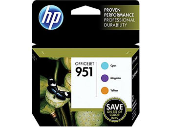 HP 951 Ink Cartridges- Multicolored Combo Pack Keep a supply of HP OfficeJet 951 color ink cartridges on hand so that your printer is never out of service because it ran out of ink. This money-saving combo three pack contains individual magenta, cyan, and yellow cartridges to easily replace spent inkwells as needed. Buy more…