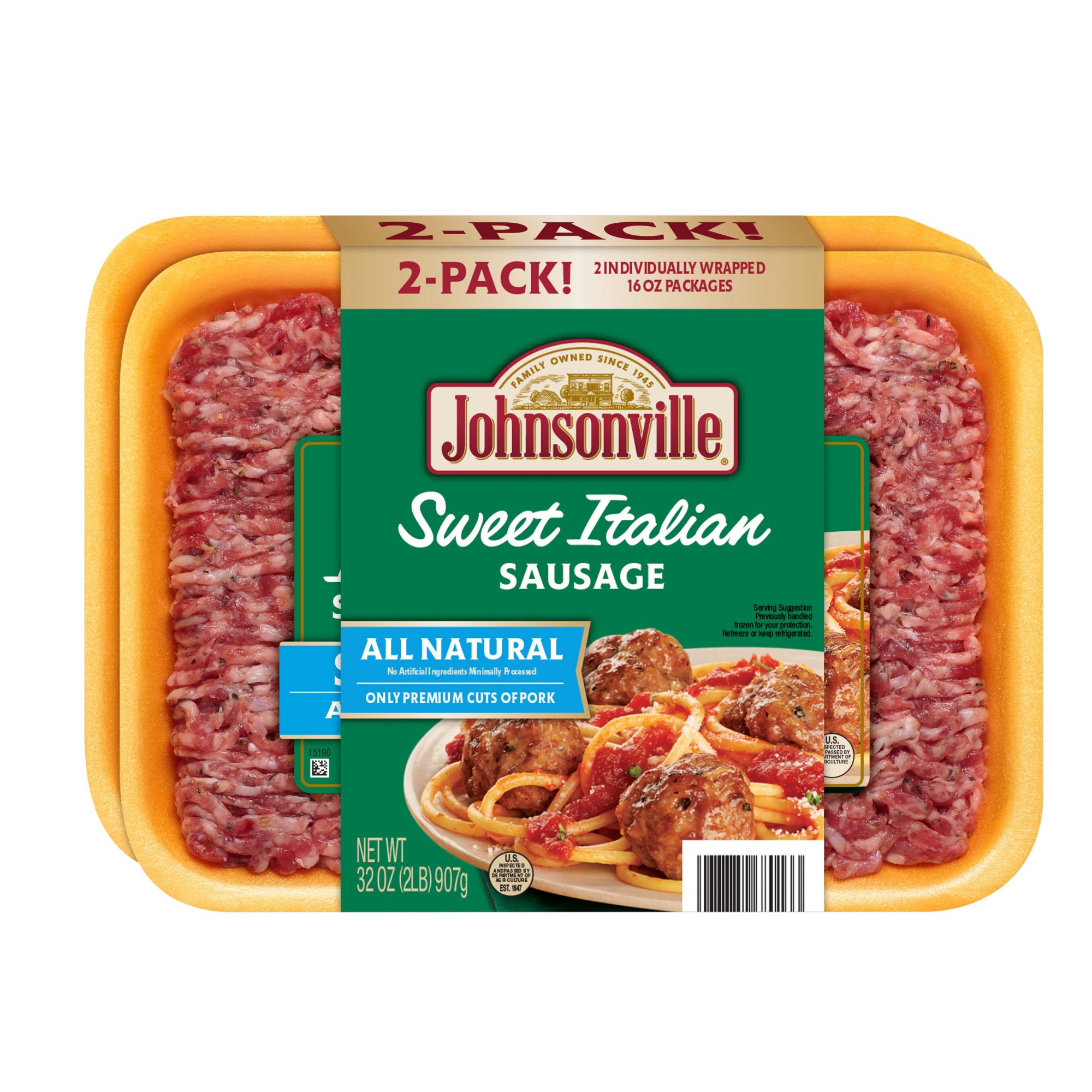 Made in USAExperience a burst of authentic Italian flavor with Johnsonville Sweet Italian Ground Sausage. Each bite contains authentic Italian flavor and it’s easy to add to your favorite recipe from pastas sauces and meatballs, to skillets, pocket sandwiches, and even burger patties. The decision is yours. Made with only premium cuts of pork perfectly blended with fresh herbs and spices, our sausages never contain any artificial colors or flavors. So whip something up with this ground sausage for the whole family and enjoy! Product Features: Made with 100% premium pork 10g of protein per serving Gluten-free, dairy-free, with no artificial colors of flavors; no nitrates or nitrites; no MSG added Two trays of 1 pound each of sweet Italian ground sausage An exceptional choice for Italian-inspired dishes Ingredients:Pork, water and less than 2% of the following: pork broth with natural flavorings, salt, natural sugar, spices, natural flavors, extractives of paprika Product Warnings and Restrictions: Keep Refrigerated