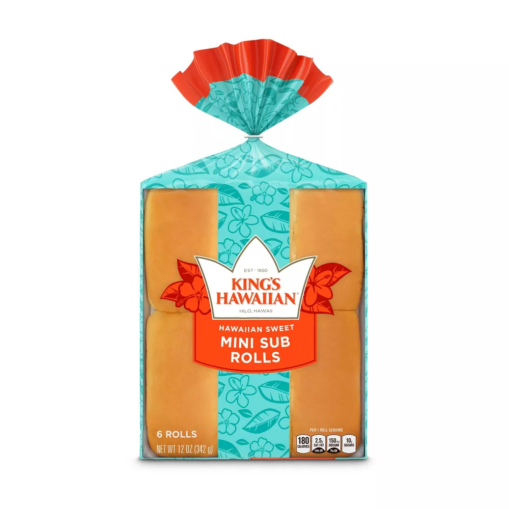 Enjoy the delicious taste of KING’S HAWAIIAN Original Hawaiian Sweet Mini Sub Rolls. This original Hawaiian sweet bread recipe is rolled into an authentic Hawaiian sweet sub roll. KING’S HAWAIIAN mini sub sandwich rolls have a melt-in-your mouth texture– soft and fluffy with just the right touch of sweetness that can elevate any meal. With no high fructose corn syrup, artificial dyes or trans fat, these sweet sub rolls are uniquely crowd-pleasing. KING’S HAWAIIAN Rolls are the perfect size for making mini sandwiches, kid-friendly snacks and sweet snacks such as a Mango Napoleon. When they’re not the main dish, our sandwich rolls still make an impression when shared as a delicious appetizer that’s ready in a pinch. Don’t be surprised if these irresistibly delicious Hawaiian sweet rolls get eaten before they ever make it to the table.