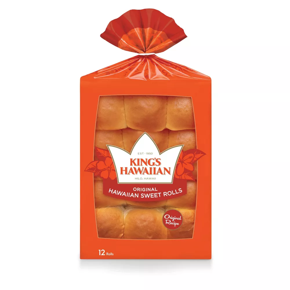 Enjoy the delicious taste of KING’S HAWAIIAN Original Hawaiian Sweet Rolls. This original Hawaiian sweet bread recipe is rolled into an authentic Hawaiian sweet dinner roll. KING’S HAWAIIAN dinner rolls have a melt-in-your mouth texture– soft and fluffy with just the right touch of sweetness that can elevate any meal. With no high fructose corn syrup, artificial dyes or trans fat, these sweet bread rolls are uniquely crowd-pleasing. KING’S HAWAIIAN Rolls are the perfect size to make great-tasting slider rolls, kid-friendly snacks and delightful desserts such as glazed donut bites. When they’re not the main dish, KING’S HAWAIIAN sweet rolls still make an impression as a complement to family dinners or when shared as a delicious heat and eat side that’s ready in a pinch. Don’t be surprised if these irresistibly delicious dinner rolls get eaten before they ever make it to the table.