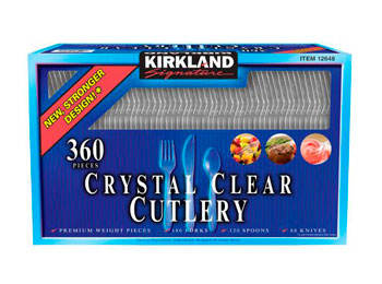 Premium strength crystal clear cutlery contains 360 premium weight pieces – 180 forks, 120 spoons and 60 knives, each in convenient, individually wrapped 20 count packs. Quality cutlery, designed for all occasions, banquets, parties, upscale catering, at home.
