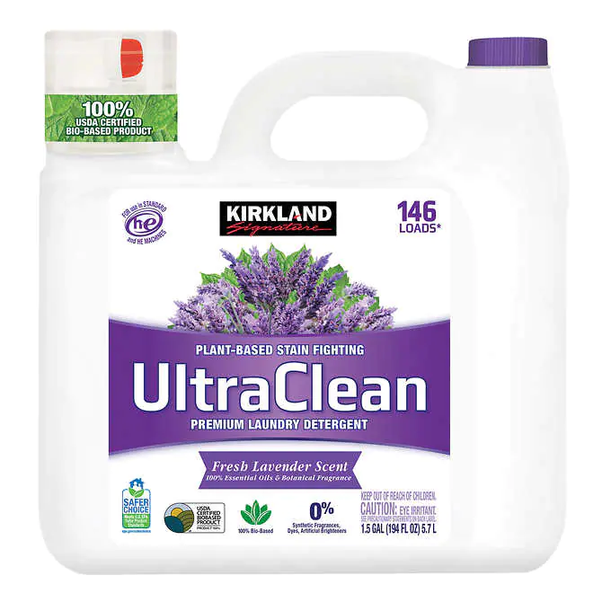 Kirkland Signature Ultra Clean HE Plant-Based Liquid Laundry Detergent, Lavender, 146 loads, 194 fl oz