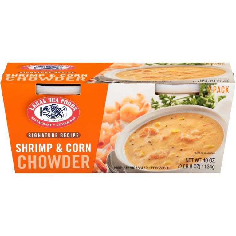 Made in USAThis unique chowder stars tasty shrimp meat and roasted sweet corn. The supporting cast of red peppers, light cream and potatoes plays wonderfully to bring out every bit of seafood, dairy and vegetable flavor. Product Features: Enjoy Legal Seafood restaurant quality at home Easy prep and cleanup with the microwaveable container Includes two 20-oz. bowls of soup (Model 72215) Product Warnings and Restrictions: Contains milk, lobster, shrimp and wheat
