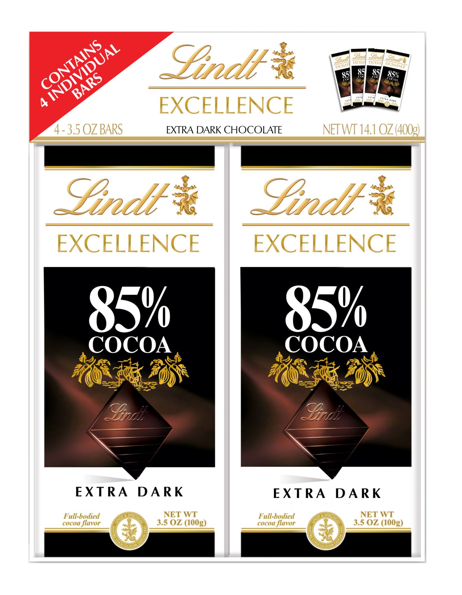Made in USACreating premium chocolate is an art that requires great skill, dedication and passion, and the Maitres Chocolatiers of Lindt are masters of this craft. This double pack of Lindt Excellence 85% Dark Chocolate Bars boast an intensely smooth texture. With just one bite, you’ll be captivated by the decant taste. Perfect for any and every springtime celebration or as a treat for yourself, the dark chocolate bars are sure to delight. Product of the USA. Kosher. Product Features:  Dark chocolate bar pack including 85% cocoa Shelf life: 12 months from production date Includes four 3.5-oz. bars (Model 6025)
