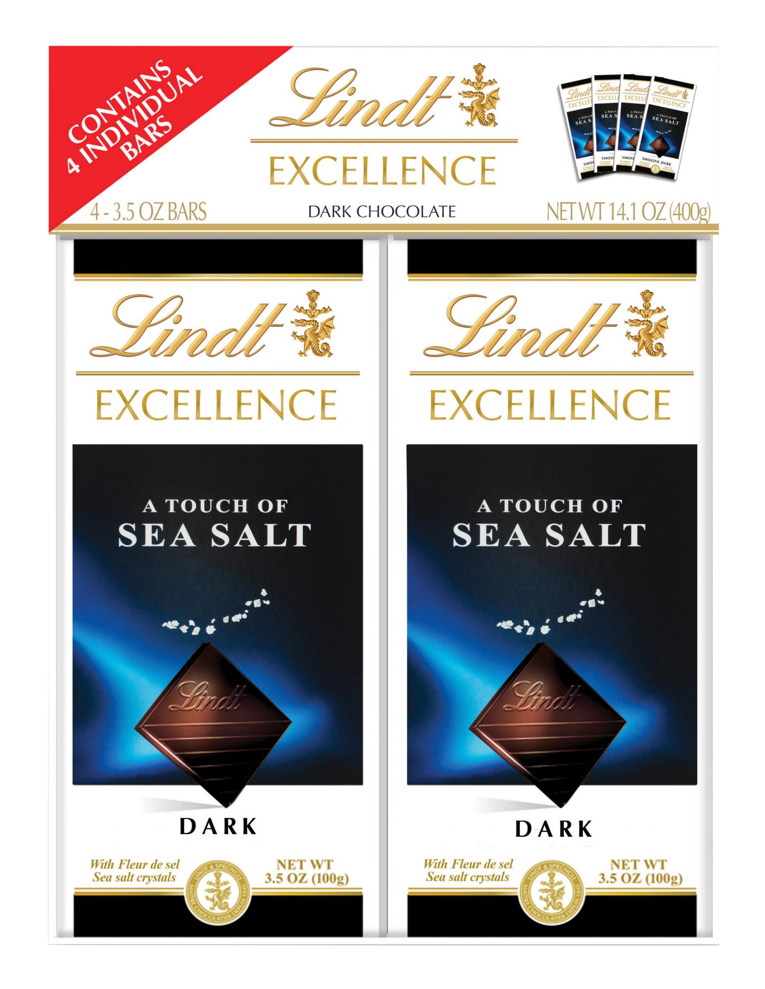 Made in USA Lindt Excellence Sea Salt Dark Chocolate Bars feature the complexity of dark chocolate enhanced by the addition of Fleur de Sel, a premium French sea salt, in this premium chocolate bar from the Lindt Master Chocolatiers. Product Features: Dark chocolate with a touch of sea saltDelicious Lindt chocolateMade in the USAIncludes four-count of 3.5-oz. sea salt dark chocolate bars Product Warnings and Restrictions: May contain peanuts or tree nuts, milk (Model 037466056869)