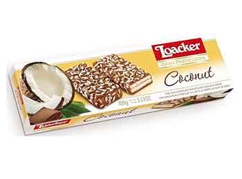 Coconut. An exotic pleasure that’s simply divine! Loacker Gran Pasticceria Coconut Cookies feature heavenly coconut cream between deliciously thin wafers, wrapped in the finest milk chocolate and sprinkled liberally with fresh coconut flakes. Welcome to paradise! rLoacker Gran Pasticceria Coconut Cookies: rFine milk chocolate biscuits with coconut cream. rNo coloring and no preservatives. rPure goodness from the heart of the Italian Alps.