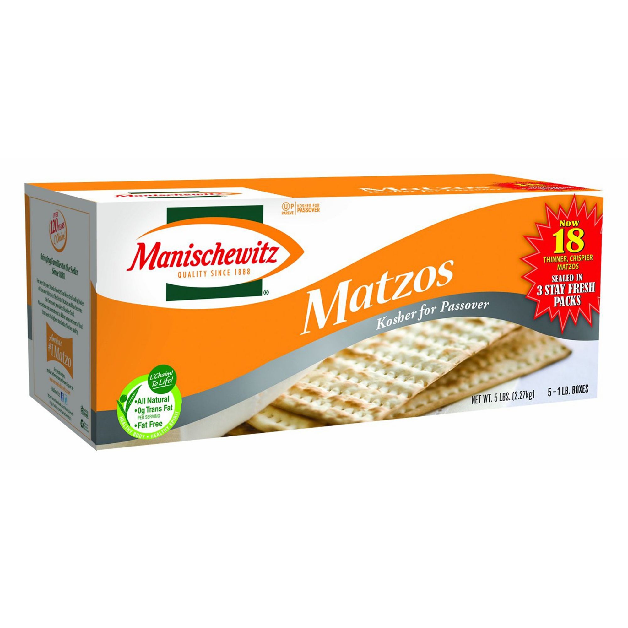 Manischewitz Unsalted Matzo is Kosher for Passover and all year round. These cracker matzos make for a great low fat snack. You can also toast them for that fresh from the oven flavor. Product Features: Manischewitz Unsalted Matzo is Kosher for Passover and all year roundGreat low fat snackToast them for even more flavorIncludes 5 lb. box of Manischewitz Unsalted Matzo (Model 72700000017) Product Warnings and Restrictions: Contains wheat.